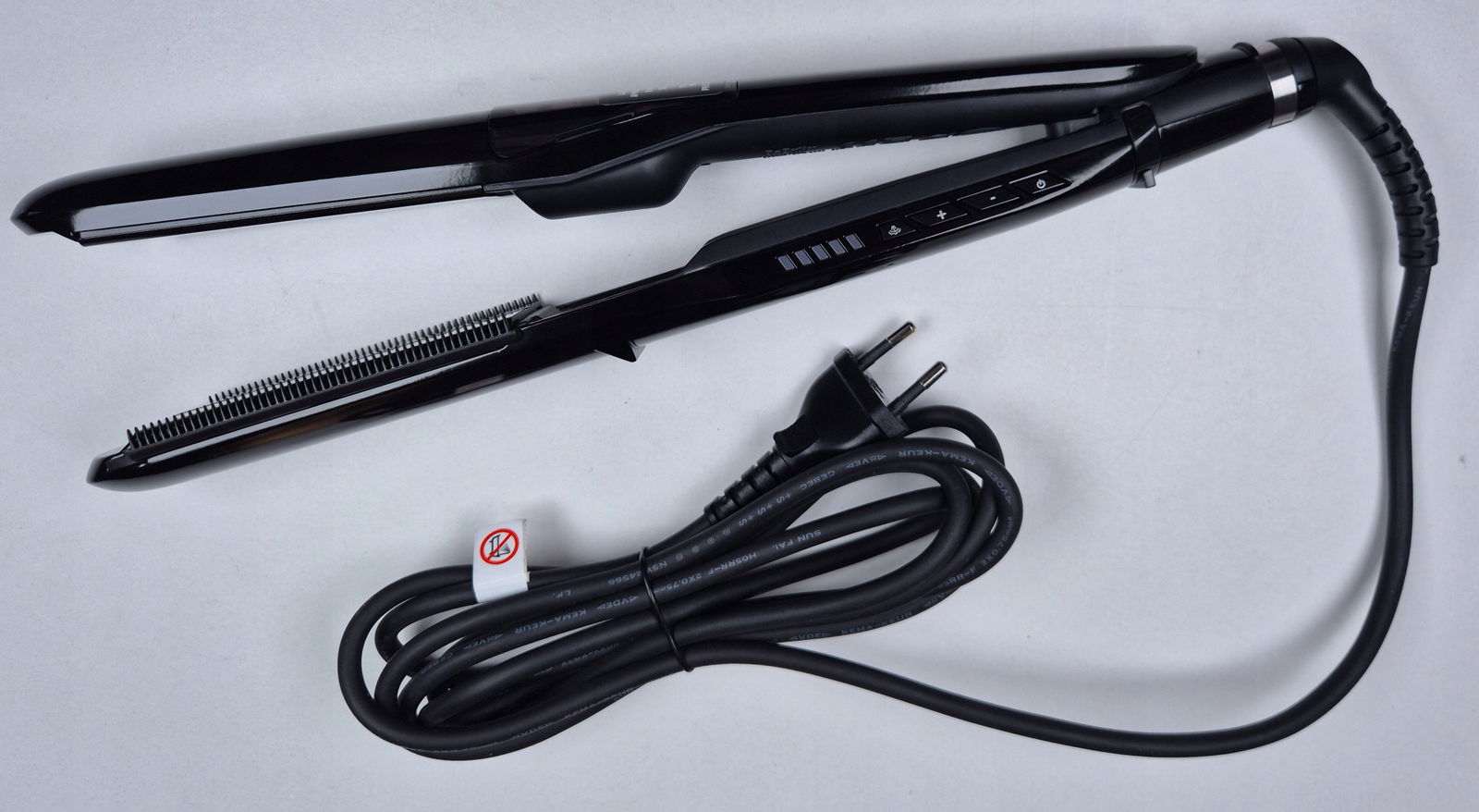 - Zakres temperatury: 150°C – 230°C – pięć poziomów regulacji dla wszystkich typów włosów.