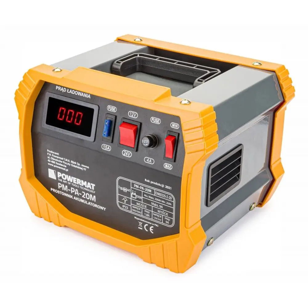 Wysokiej jakości automatyczny i precyzyjny prostownik akumulatorowy POWERMAT PM-PA-20M. Świetnie sprawdza się w profesjonalnych serwisach i warsztatach samochodowych jak i w przydomowych garażach. Urządzenie może ładować prądem o napięciu 12V i 24V.