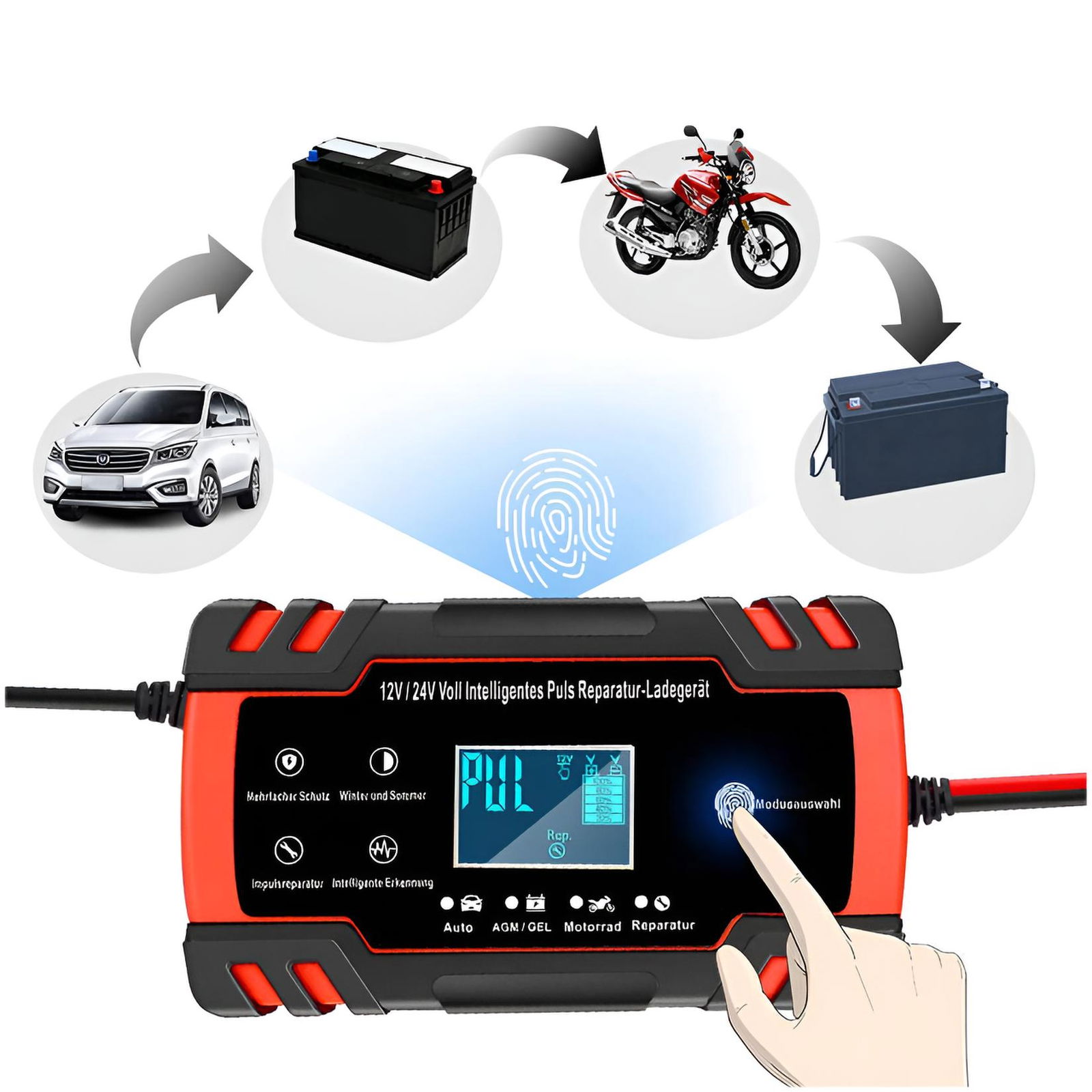 PROSTOWNIK ŁADOWARKA DO AKUMULATORA LCD 12V 24V 8A FUNKCJA NAPRAWY AKU