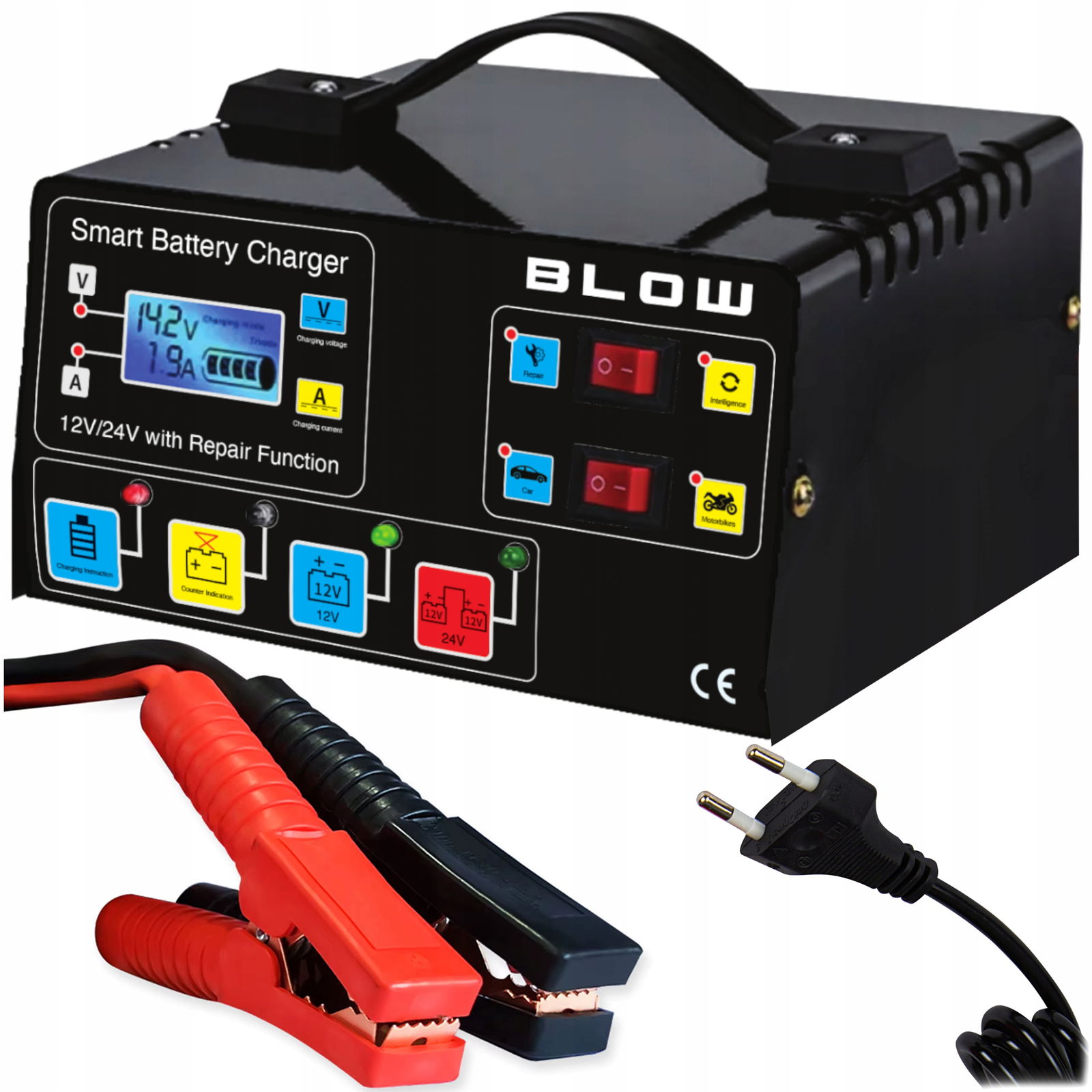 PROSTOWNIK SAMOCHODOWY AUTOMATYCZNY Z FUNKCJĄ NAPRAWY AKUMULATORÓW 12V 24V