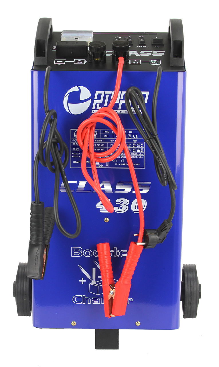 Prostownik CLASS 430 z funkcją rozruchu to profesjonalne narzędzie do ładowania i wspomagania rozruchu akumulatorów ołowiowo-kwasowych o napięciu 12 V; 24 V i pojemności akumulatorów od 40 Ah do 400 Ah.
