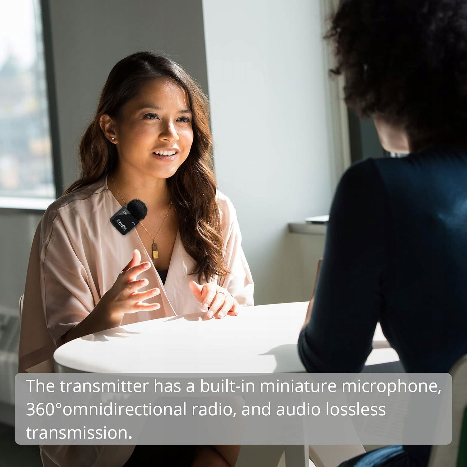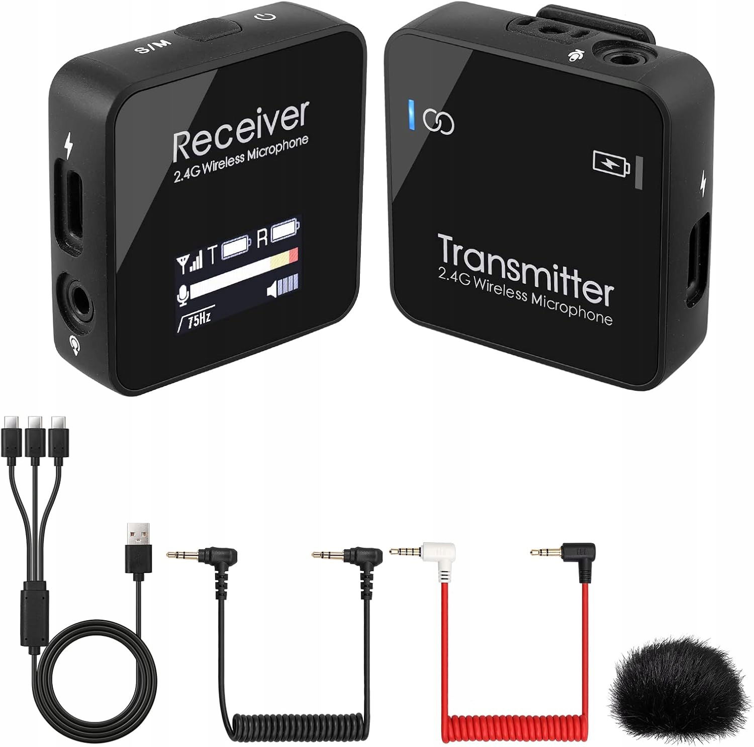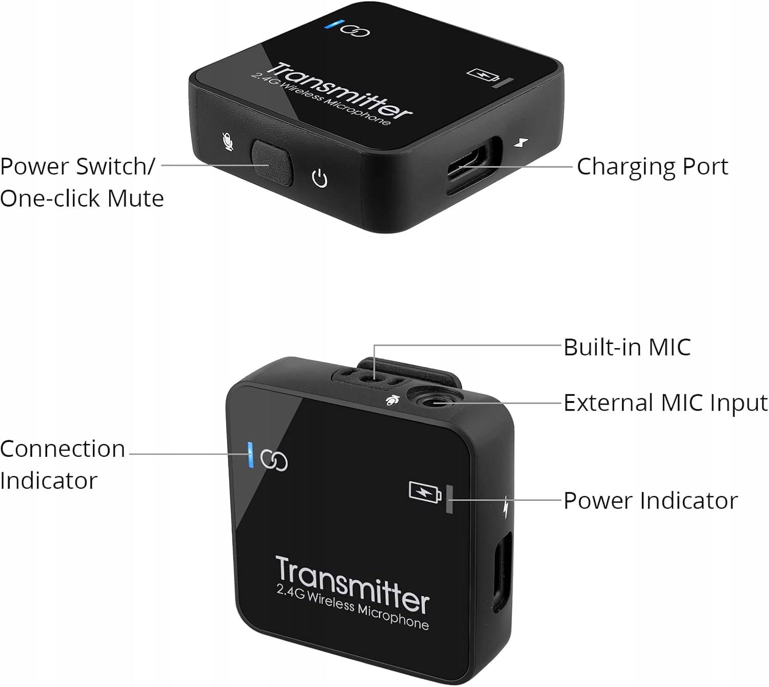 - 【Doskonała jakość dźwięku】 Produkt jest przeznaczony do profesjonalnej branży transmisji wideo na żywo. Nadajnik ma wbudowany miniaturowy mikrofon, radio dookólne 360°, wysoką czułość i ultraczysty odbiór dźwięku, bezstratną transmisję dźwięku klasy nadawczej bez opóźnień, zapewniając wyższą jakość dźwięku.