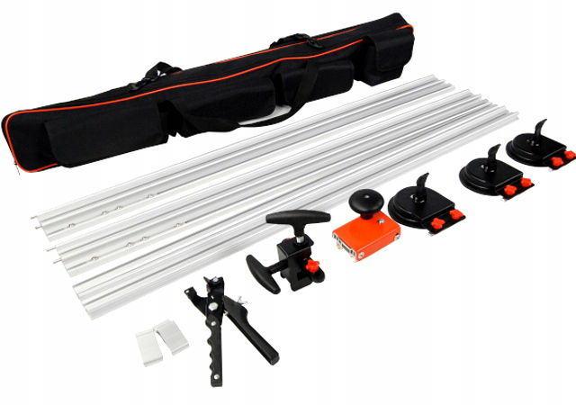 Zestaw do cięcia płytek dużych formatów polskiej marki Kraft&Dele jest niezbędny w precyzyjnym cięciu każdego rodzaju płytek. Sylikonowe podkładki i przyssawki mocujące zapobiegają przypadkowemu przesunięciu się prowadnicy podczas cięcia. Solidne i stabilne wykonanie pozwala na wykorzystanie urządzenia przy pracach remontowych i wykończeniach glazurniczych na poziomie amatorskim i profesjonalnym. Przyrząd charakteryzuje łatwość obsługi i poręczność - całość zapakowana w poręczną torbę na ramię!