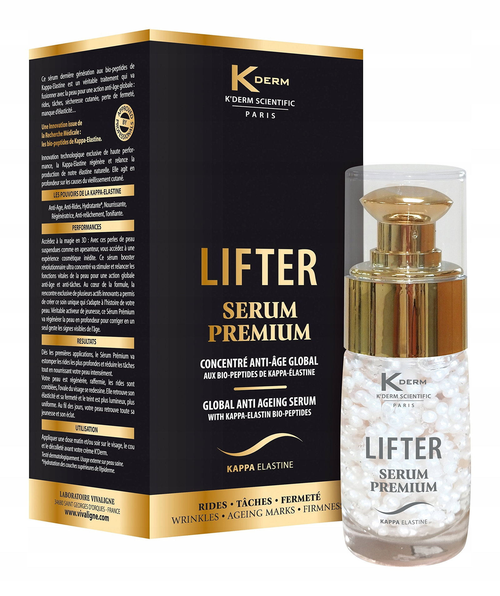 - INNOWACJA, JAKOŚĆ, WYDAJNOŚĆ: Specjalista w dziedzinie przeciwstarzeniowych, Vivaligne Laboratory łączy badania medyczne i kosmetologię, aby osiągnąć skuteczne i niezwykłe wyniki. W naszej walce ze starzeniem się skóry opracowaliśmy gamę K'Derm, prawdziwą innowację w zakresie biopeptydów Kappa-Elastine, zatwierdzoną przez wielu dermatologów i chirurgów kosmetycznych