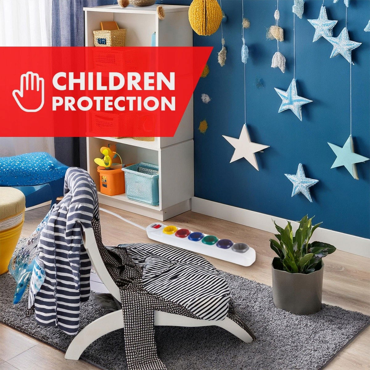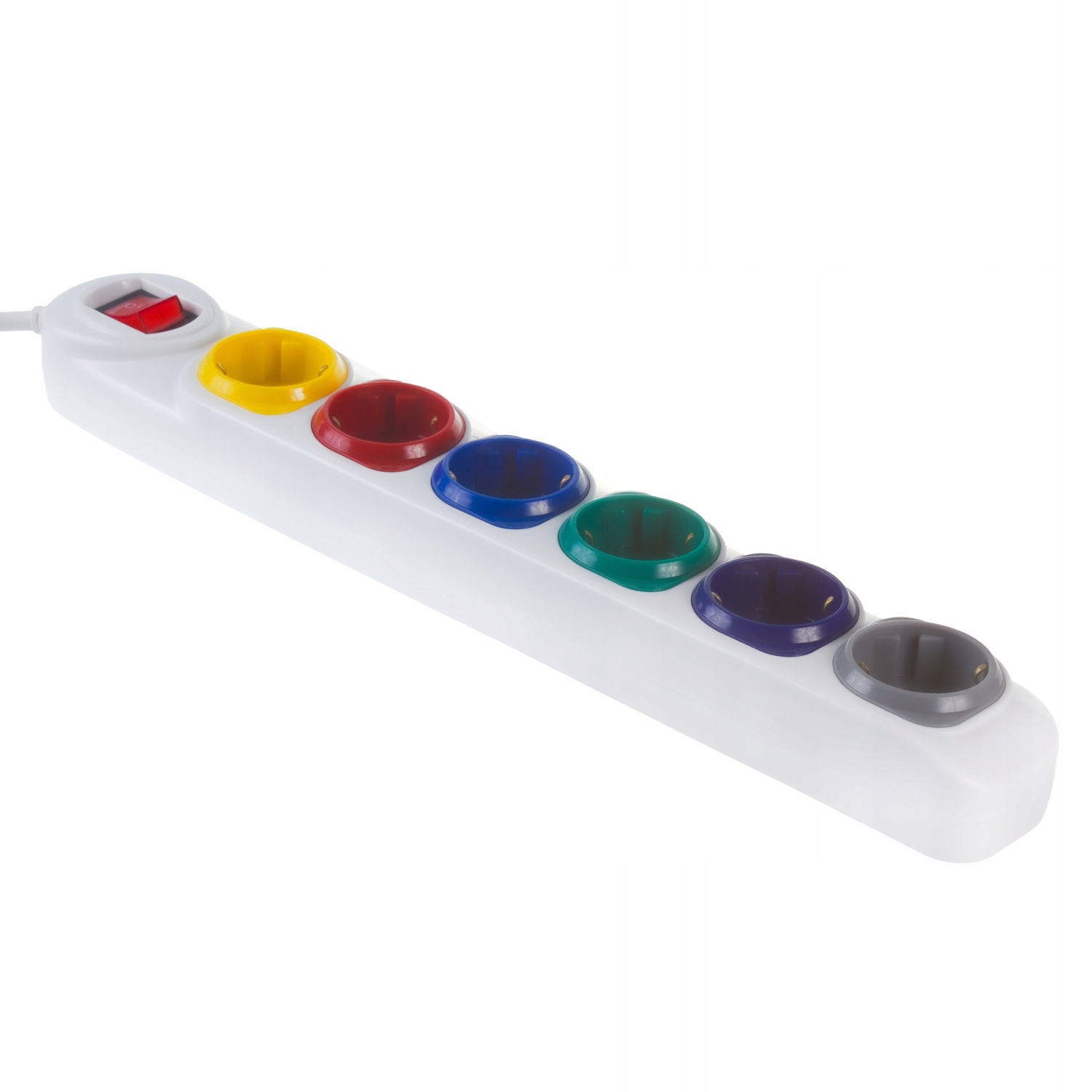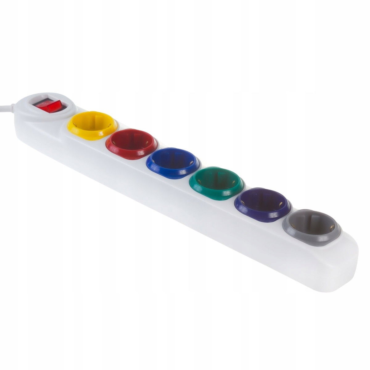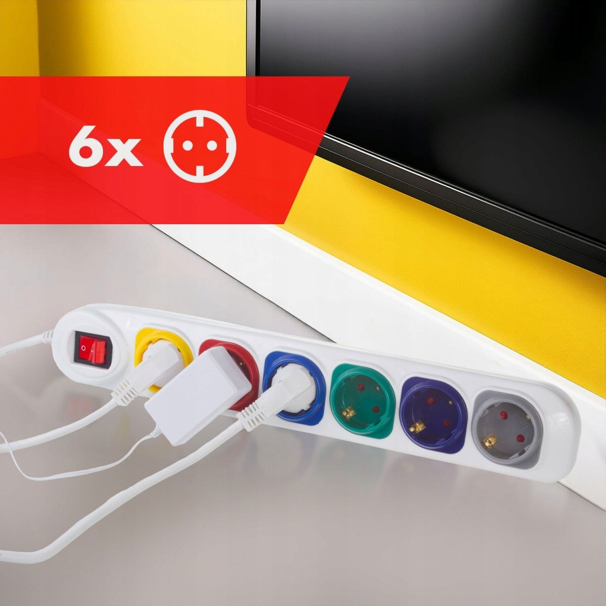 - 6 kolorowych gniazd z uziemieniem
