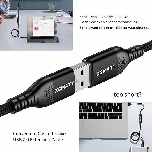 Przedłużacz 8M USB 2.0: Zaprojektowany do użycia z hubem USB, pendrive'em, dyskiem twardym, PS4 i Xbox One, klawiaturą, myszą, drukarką, odtwarzaczem DVD, innymi kablami USB itd.