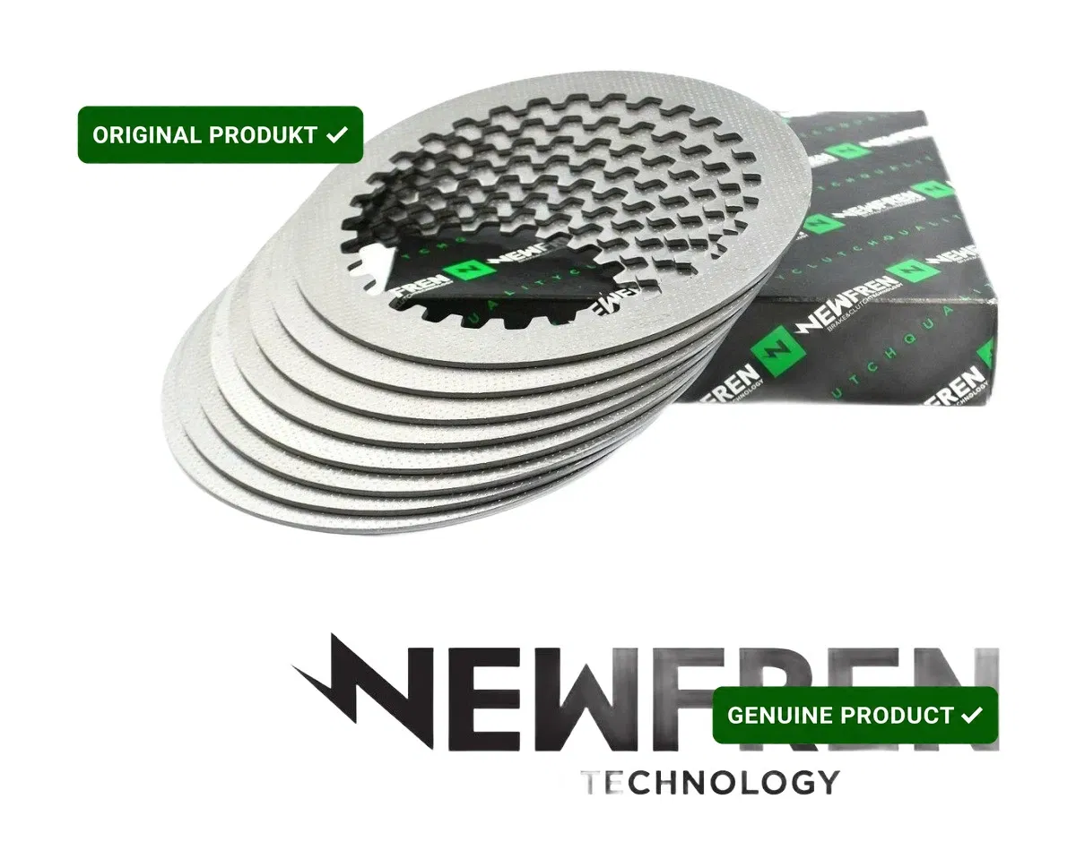 NEWFREN F2708CC to zestaw stalowych przekładek tarcz sprzęgłowych, zaprojektowanych jako kluczowy element mokrego sprzęgła. Zapewniają one odpowiednie oddzielenie tarcz ciernych, co jest niezbędne dla płynnego załączania i rozłączania napędu oraz efektywnego przenoszenia mocy w motocyklu.