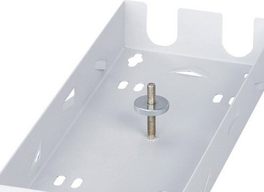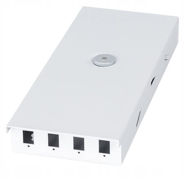 Posiada zamocowany na stałe kołek gwintowany M5 z dwiema nakrętkami radełkowanymi do montażu kasety światłowodowej i zabezpieczenia górnej pokrywy.
