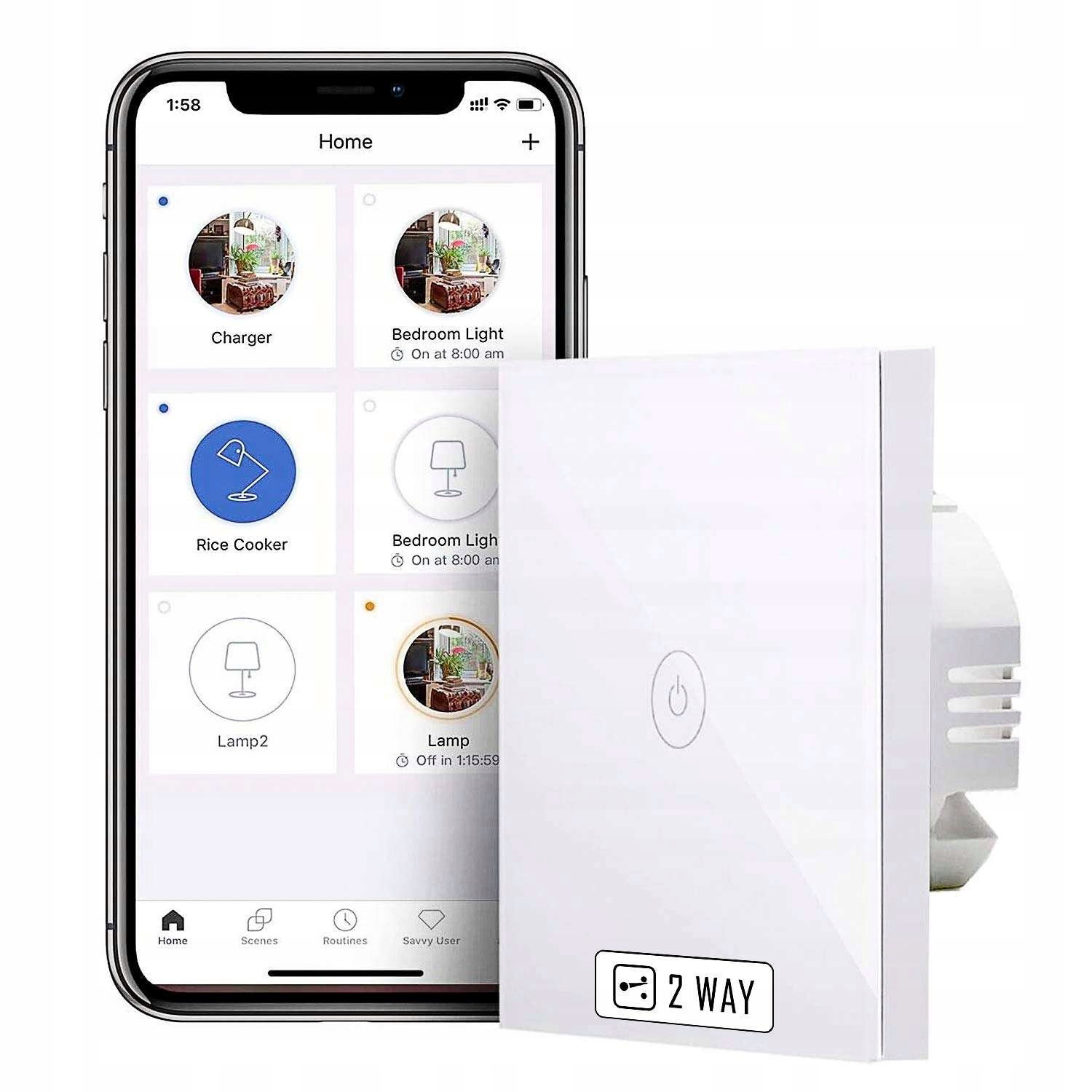 Inteligentny przełącznik światła Meross MSS550 został wyposażony w szybkę odporną na wstrząsy, obudowę z ognioodpornego ABS oraz ochronę przed przeciążeniem. Sterowanie zdalne odbywa się za pomocą aplikacji Meross. Współpracuje z Amazon Alexa, Google Assistant i SmarThings, wystarczy użyć polecenia głosowego, aby sterować.