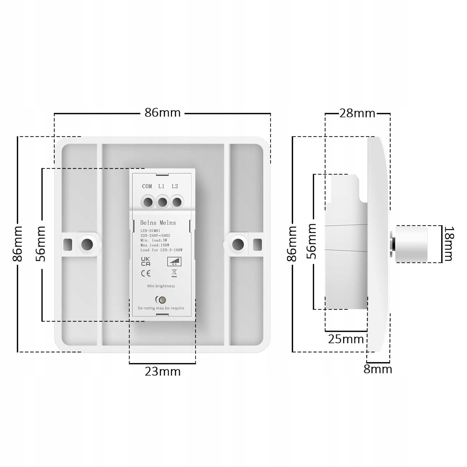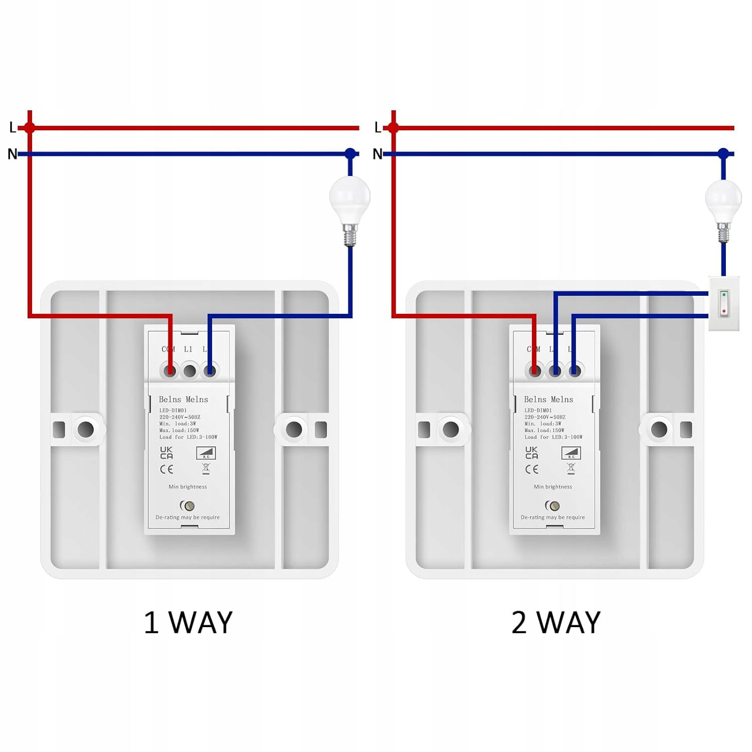 Ściemniana dioda LED - 3-100 W lampa żarowa - lampa halogenowa 3-150 W (główne napięcie) - 3-150 W