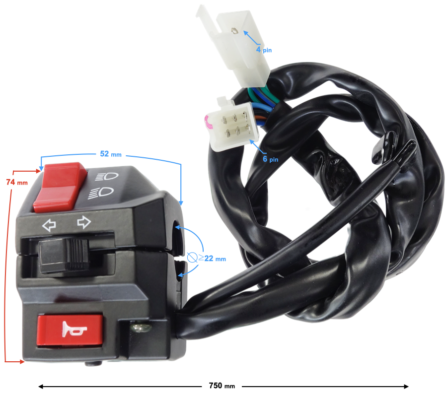 Spotkasz także pod nazwą: Przełącznik zespolony lewy, kostka 4 i 6 pinów, 10 przewodów Barton Hyper 125