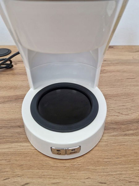 Wyposażony w szklany dzbanek z ergonomicznym uchwytem, funkcję Aroma oraz wskaźnik poziomu wody.