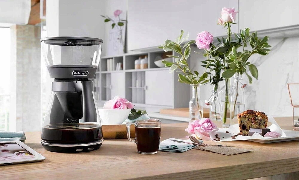 - Elegancki szklany ekspres marki DeLonghi ICM17210 o mocy 1800W.