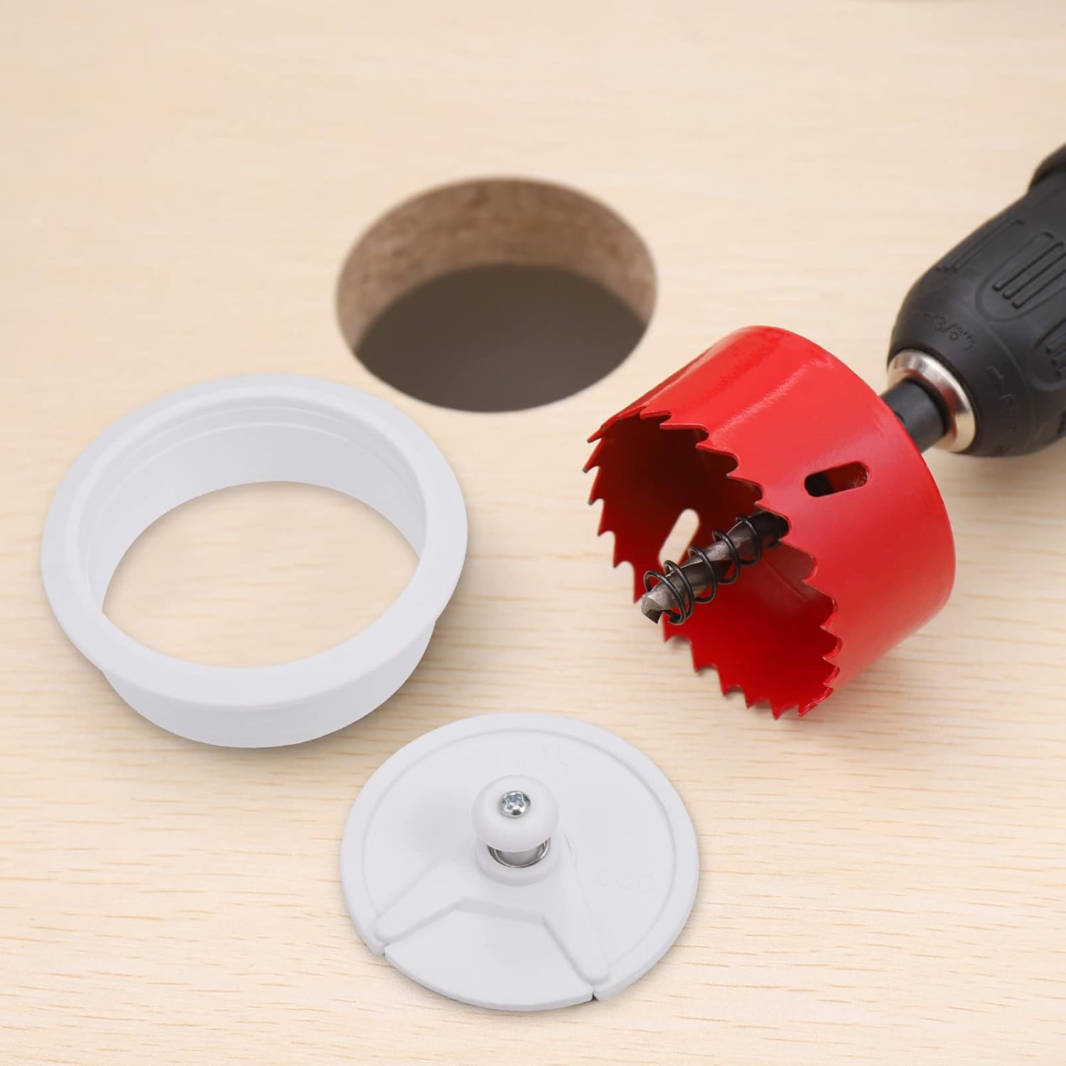 W zestawie 10 sztuk przelotekwraz z otwornicą i wiertłem prowadzącym. Do montażu będą Państwo potrzebować wyłącznie wiertarki lub wkrętarko-wiertarki.