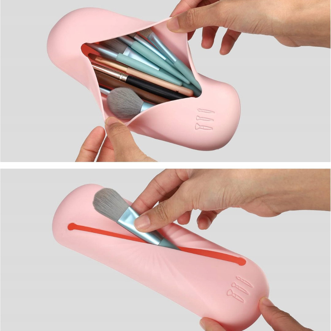 Podróżna kosmetyczka na makijaż VOCOSTE, silikonowa, przenośna, różowa jest nowoczesna, elastyczna i łatwa w czyszczeniu.