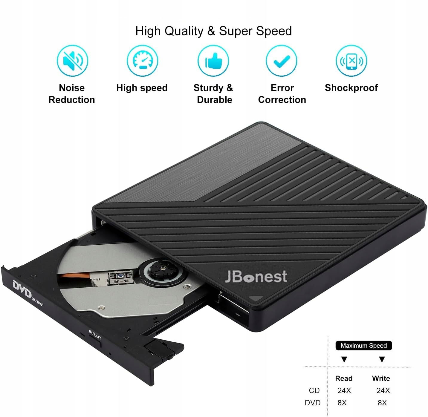 Przenośna Nagrywarka JBonest DVD RW do Laptopa PC Mac Linux