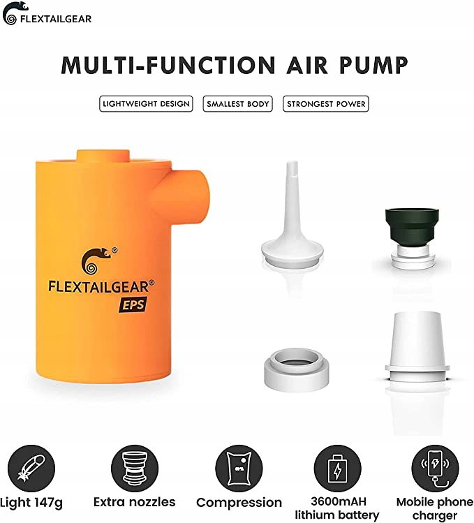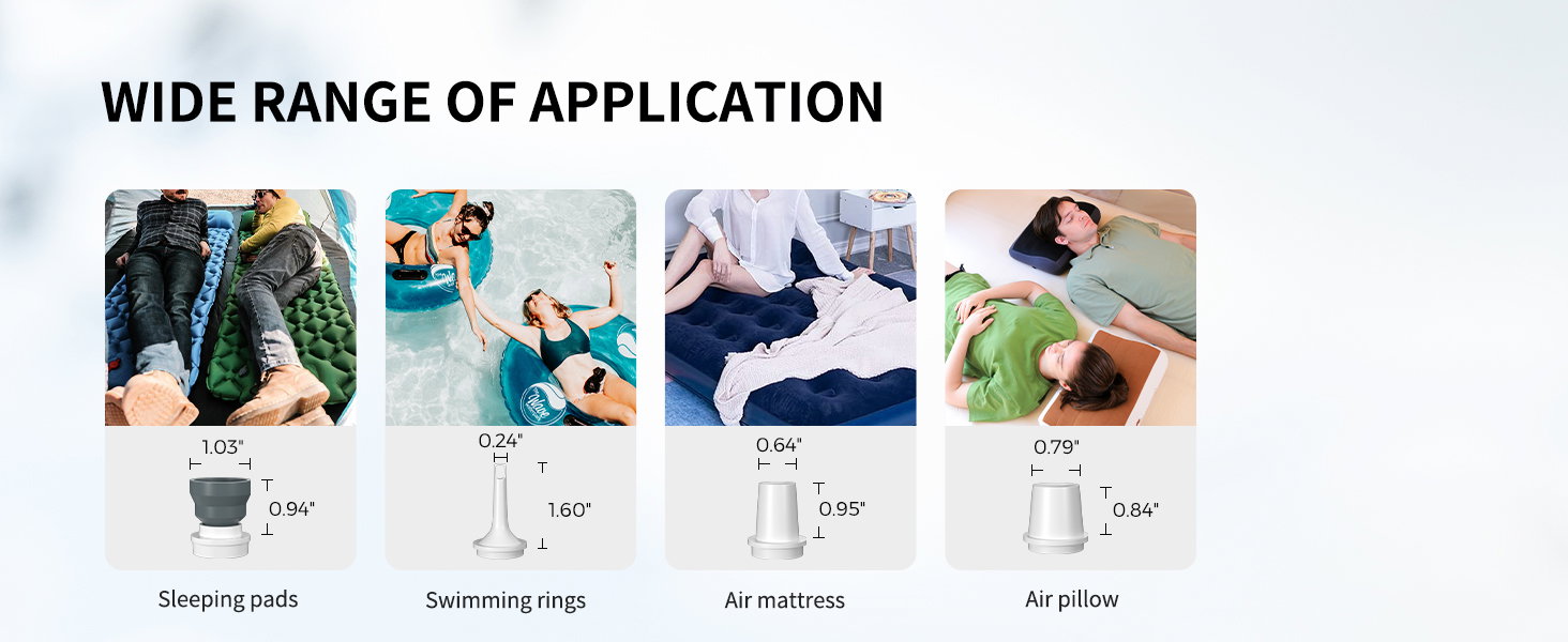 Szerokie zastosowanie: MAX PUMP 2020 jest wyposażony w trzy dysze i może napompować większość nadmuchiwanych produktów, takich jak poduszka do spania, materac dmuchany, dmuchany materac i zabawki powietrzne, koło ratunkowe i worki do przechowywania próżni.