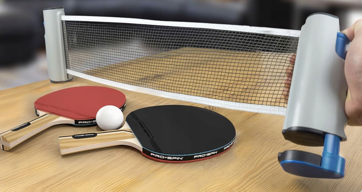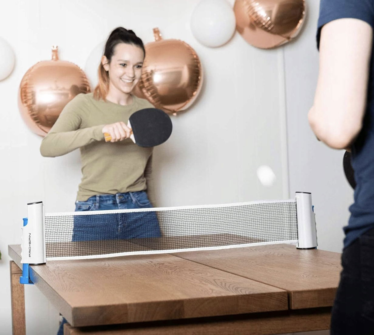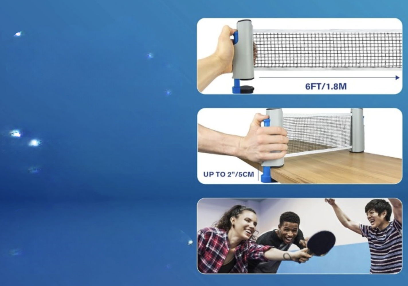 Zamień każdy stół w stół do ping ponga dzięki naszej chowanej siatce. Nie potrzebujesz pełnowymiarowego stołu do ping ponga!