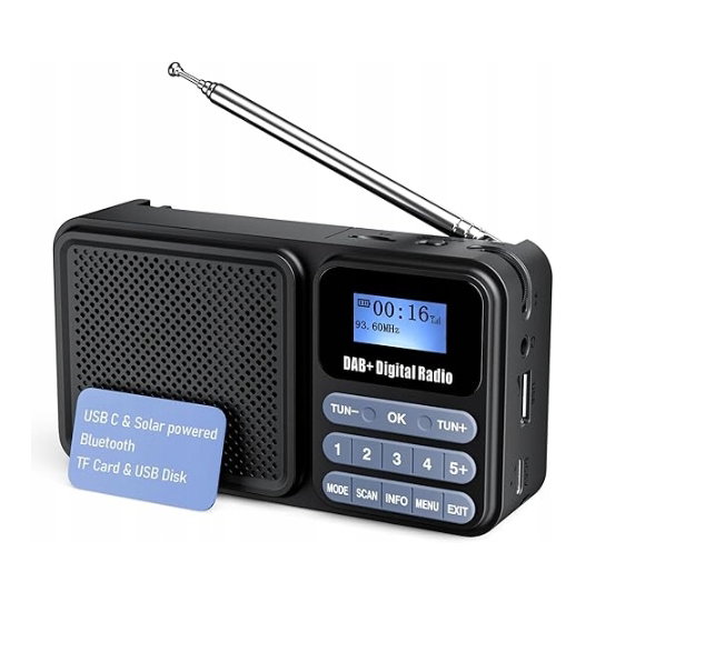 PRZENOŚNE RADIO DAB FM Z BLUETOOTH TF AUX ZASILANE BATERYJNIE POWYSTAWOWY