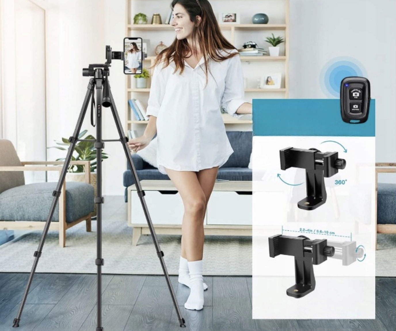 Statyw kamery do smartfona wyposażony jest w 3-kierunkową głowicę panoramiczną i wygodny uchwyt, który umożliwia płynną regulację i swobodne fotografowanie pod wieloma kątami bez skomplikowanych operacji.