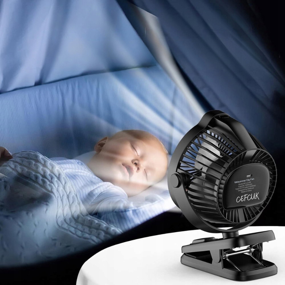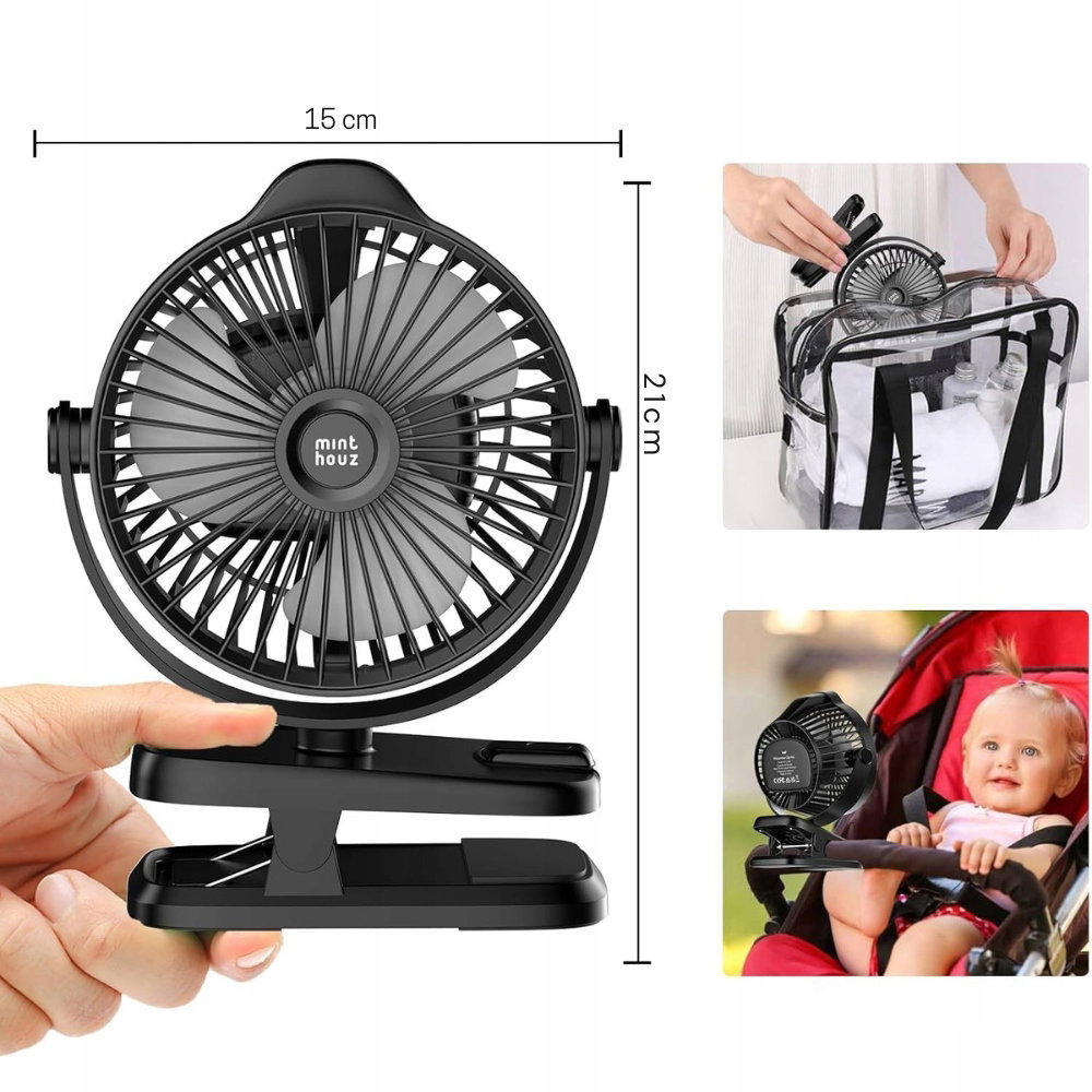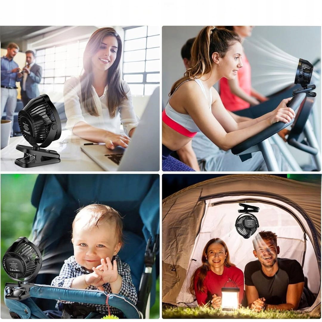 - Zastosowanie: wentylator służy do zapewniania mobilnego chłodzenia w różnych warunkach, zarówno w pomieszczeniach, jak i na zewnątrz. Może być używany na biurku, w wózku dziecięcym, podczas campingu, w samochodzie, na bieżni czy w miejscu pracy, zapewniając stały przepływ powietrza. Dzięki klipsowi i możliwości zawieszenia umożliwia montaż w wielu trudno dostępnych miejscach, dostosowując się do indywidualnych potrzeb użytkowania