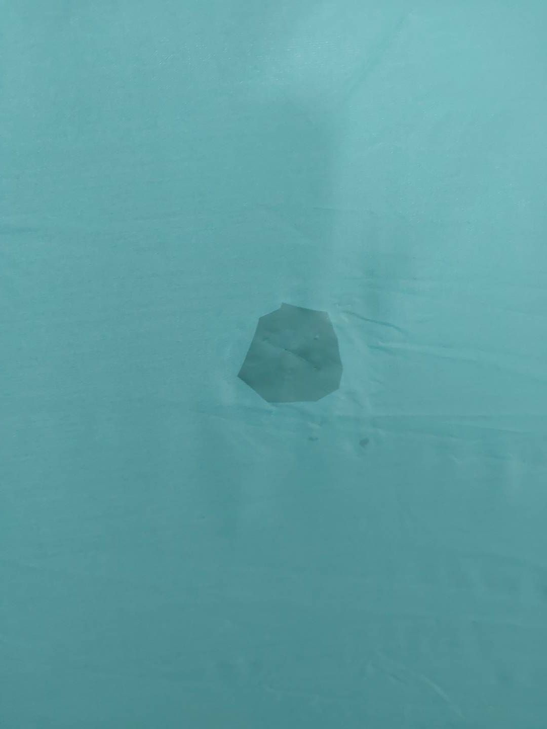 Produkt jest używany i posiada zaklejoną dziurę w ściance namiotu, co zostało uwzględnione w cenie. Szczegóły dotyczące stanu namiotu można zobaczyć na załączonych zdjęciach rzeczywistych.