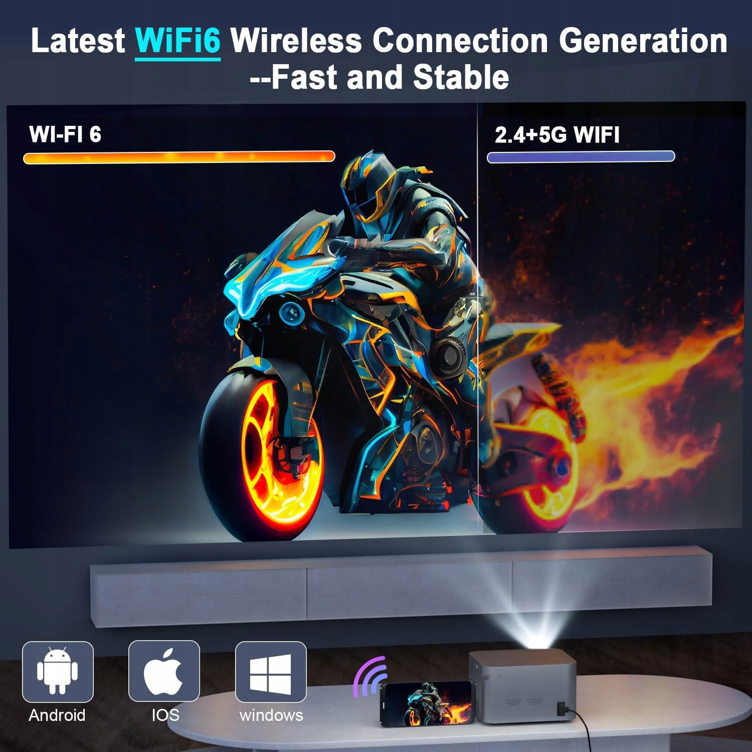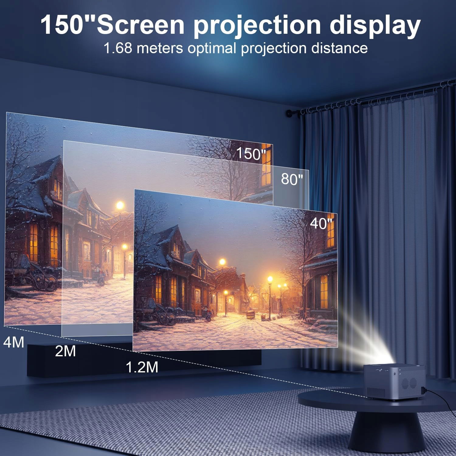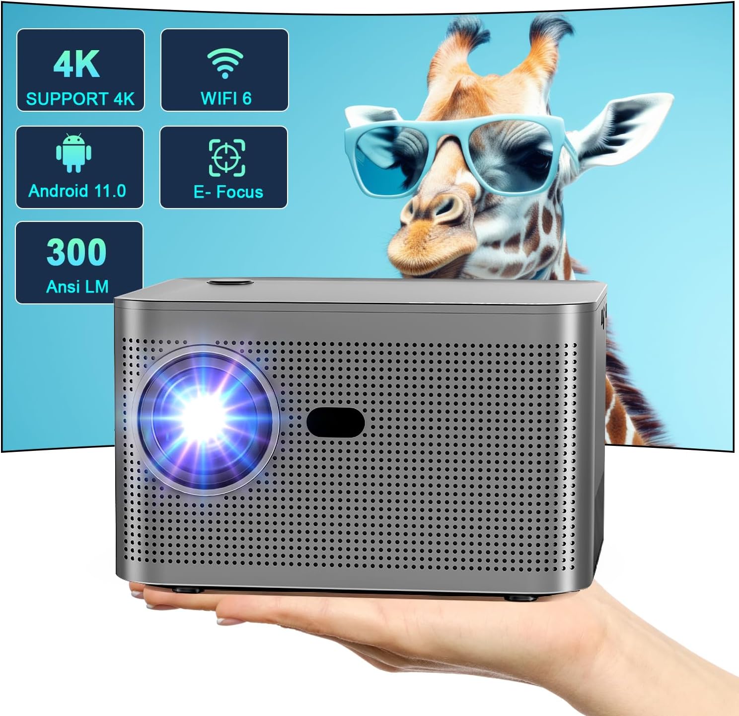 Przenośny projektor 4K 1080P, WiFi 6, BT 5.0, Android 11, 150 cali