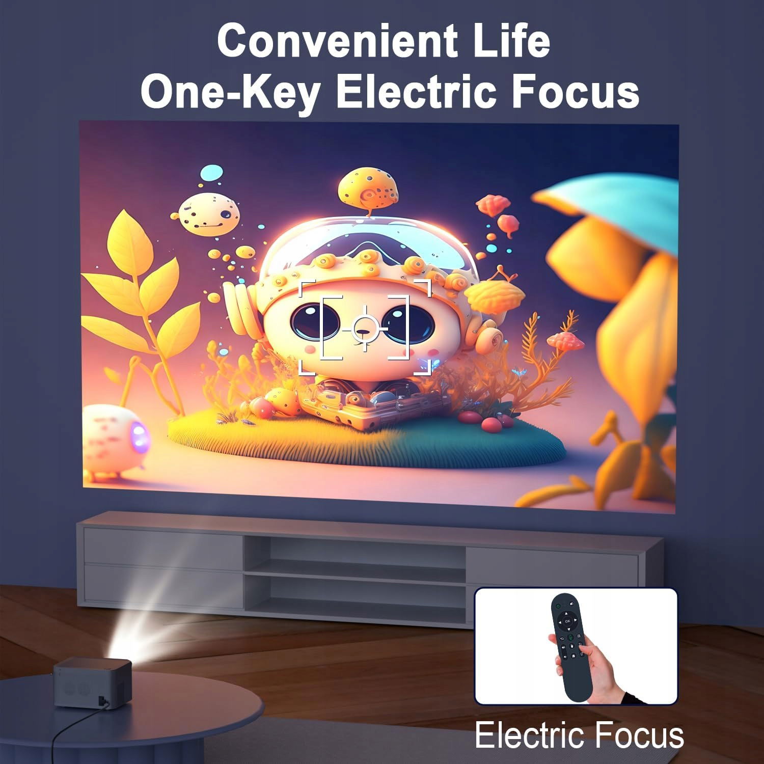 Projektor Magcubic HY350 wyposażono w funkcję elektrycznej regulacji ostrości, co pozwala na szybkie i wygodne dostosowanie obrazu za pomocą jednego kliknięcia. W przeciwieństwie do modeli wymagających ręcznej regulacji, nie musisz wstawać i przekręcać pokrętła – wystarczy nacisnąć dedykowany przycisk na pilocie, aby uzyskać wyraźne i ostre filmy oraz zdjęcia.