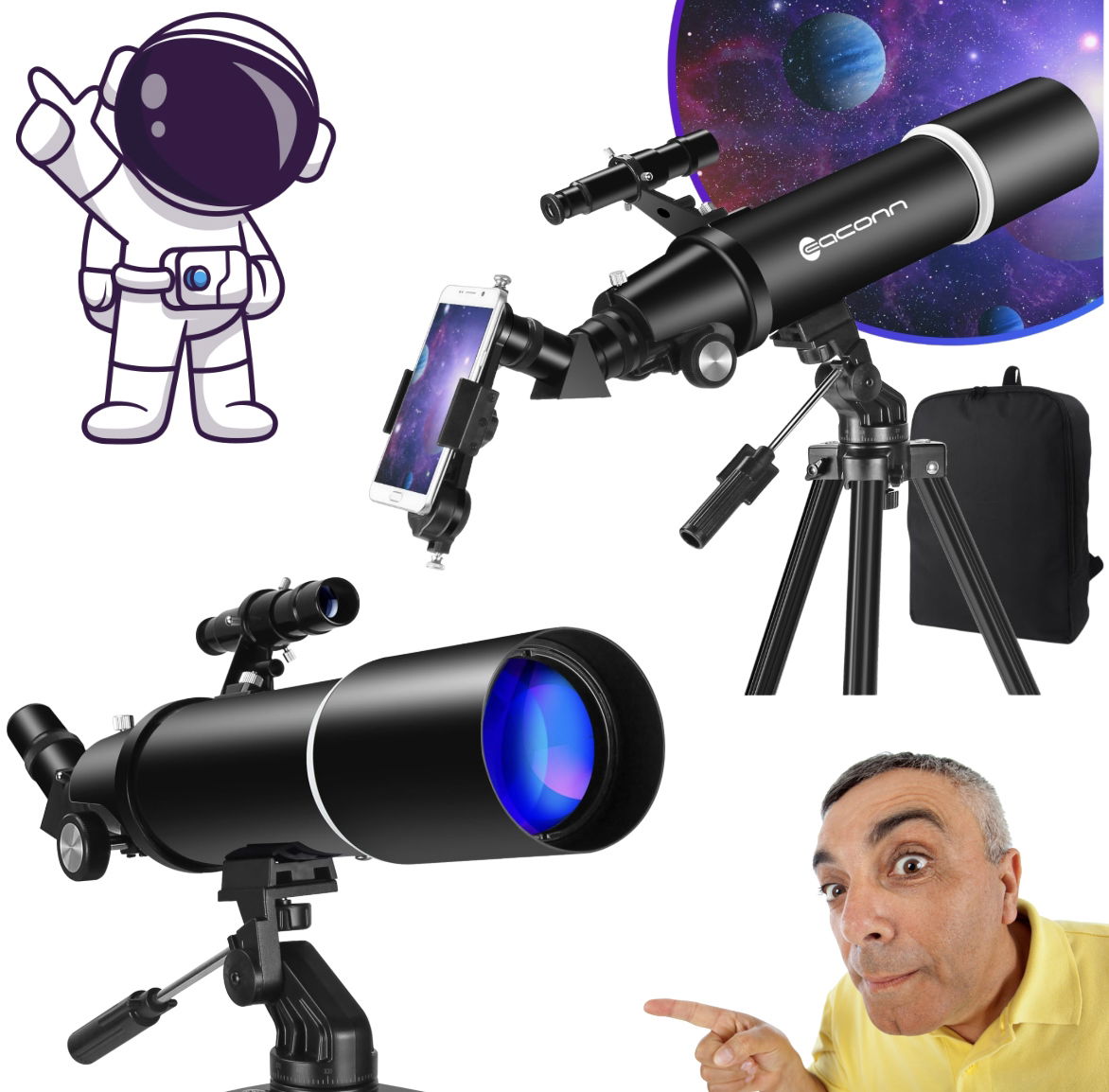 Otwórz drzwi do kosmosu z teleskopem EACONN 80AZ 80/600 mm – idealnym dla początkujących, dorosłych i dzieci!