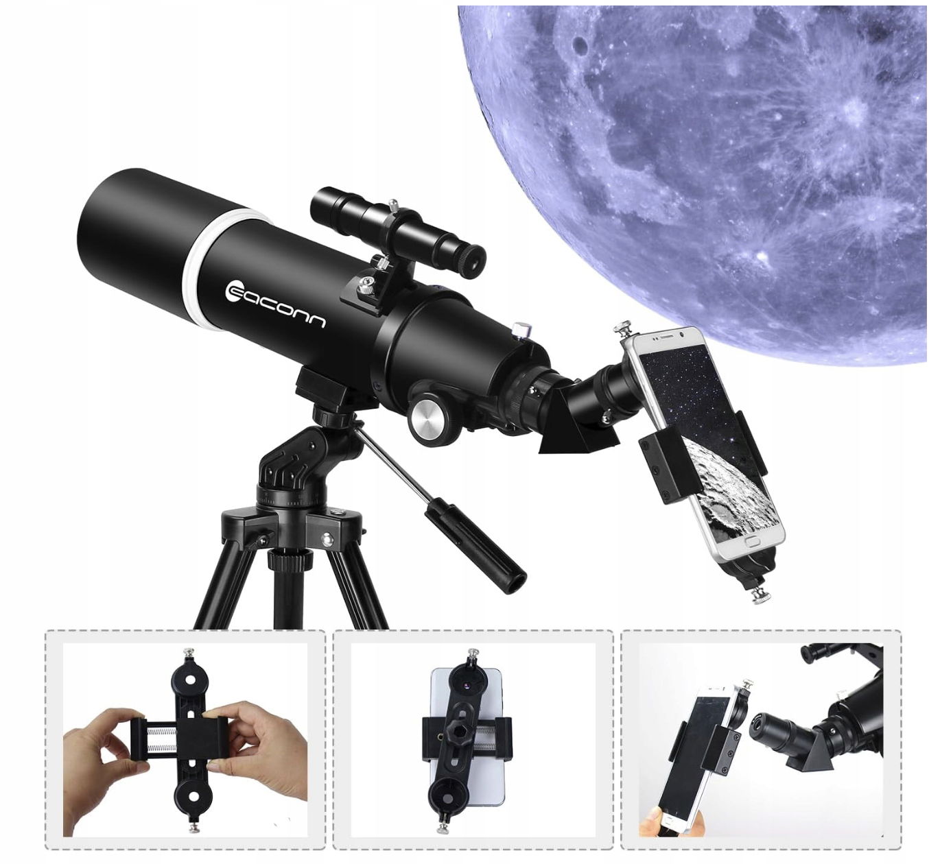Przenośny teleskop astronomiczny 80 mm ze statywem i adapterem EACONN