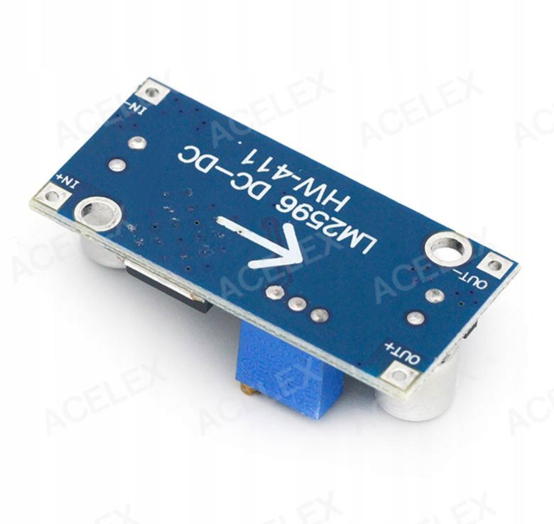 Ważna wskazówka: To jest moduł obniżający napięcie (buck). Interfejsu wejściowego i wyjściowego nie można odwrócić. Napięcie wejściowe musi być wyższe od napięcia wyjściowego. Domyślne ustawienie fabryczne to wysokie napięcie. Należy wykonać około 7-8 obrotów w przeciwną stronę, zanim napięcie zacznie spadać. 1 obrót oznacza +/- 1 V.