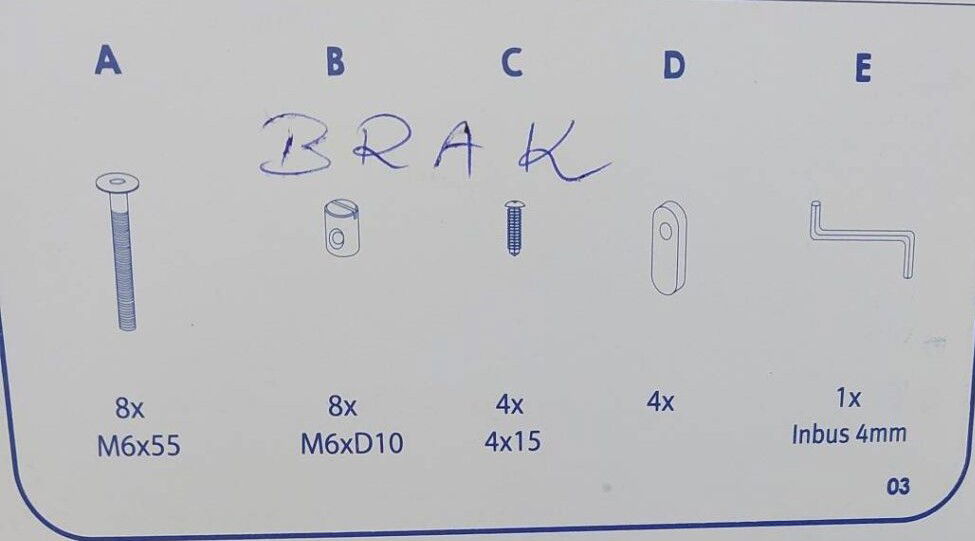PRAGNIEMY ZWRÓCIĆ PAŃSTWA UWAGĘ NA BRAKUJĄCE ELEMENTY MONTAŻOWE W ZESTAWIE, JAK PRZEDSTAWIONO NA ZDJĘCIU W INSTRUKCJI