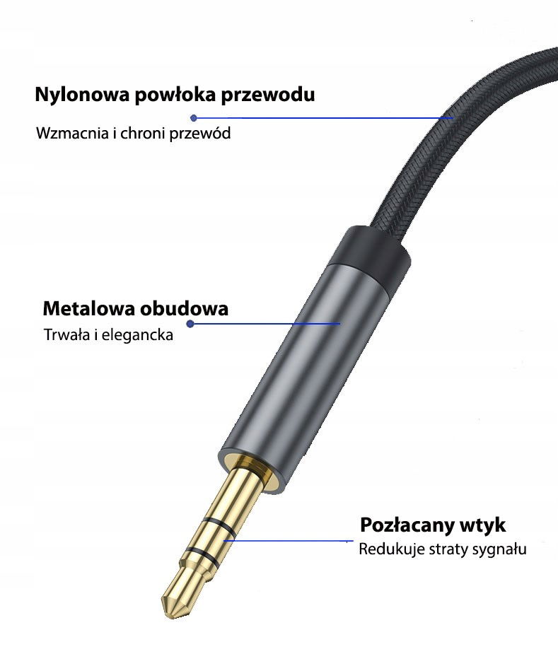 PRZEWÓD AUDIO JACK - JACK 3,5MM OPLOT AUX DO RADIA SAMOCHODOWEGO TELEFONU