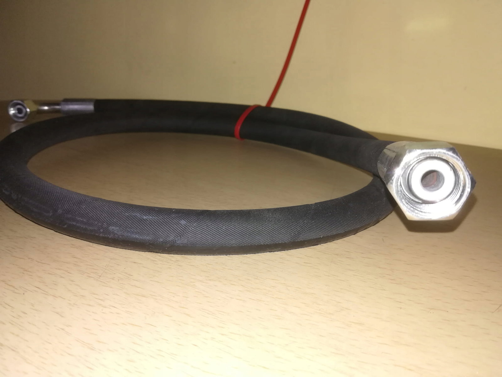Przewód hydrauliczny Semperit zakuty, gotowy do podłączenia i pracy w układzie hydraulicznym.Odporny na warunki atmosferyczne.
