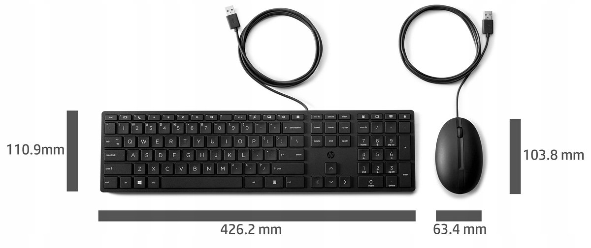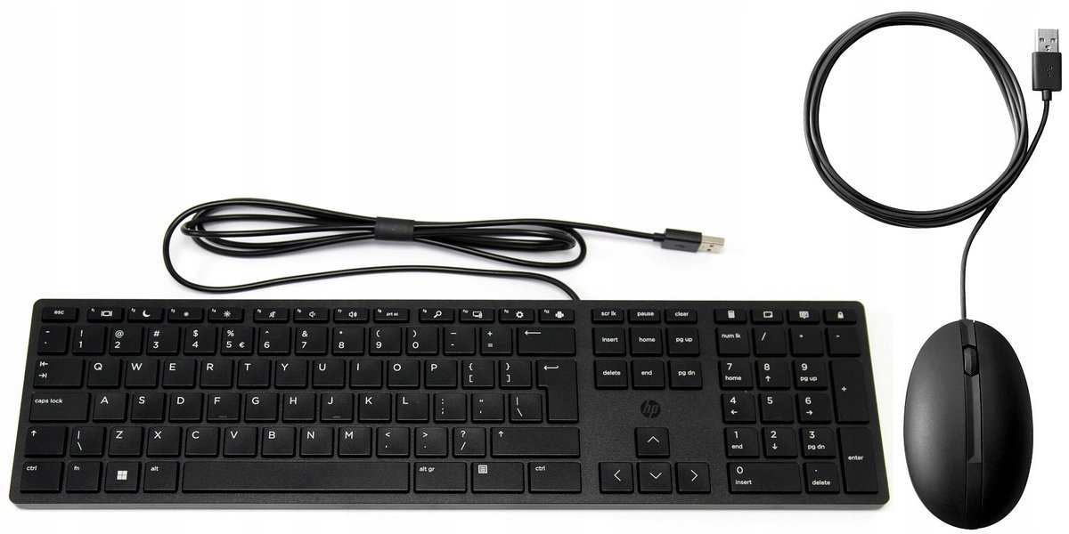 Przewodowa klawiatura i mysz HP 320MK USB Czarna pełnowymiarowa z blokiem numerycznym 9SR36AAR#ABB, układ QWERTY polski programisty z dużym klawiszem enter (układ klawiszy widoczny na pierwszym zdjęciu)