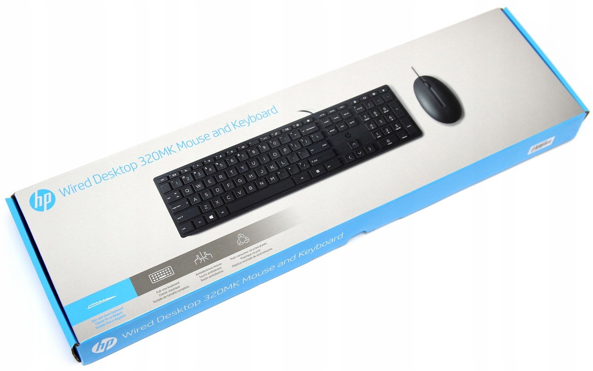 Przewodowa klawiatura i mysz HP 320MK USB Czarna pełnowymiarowa z blokiem numerycznym 9SR36AA (duży enter)