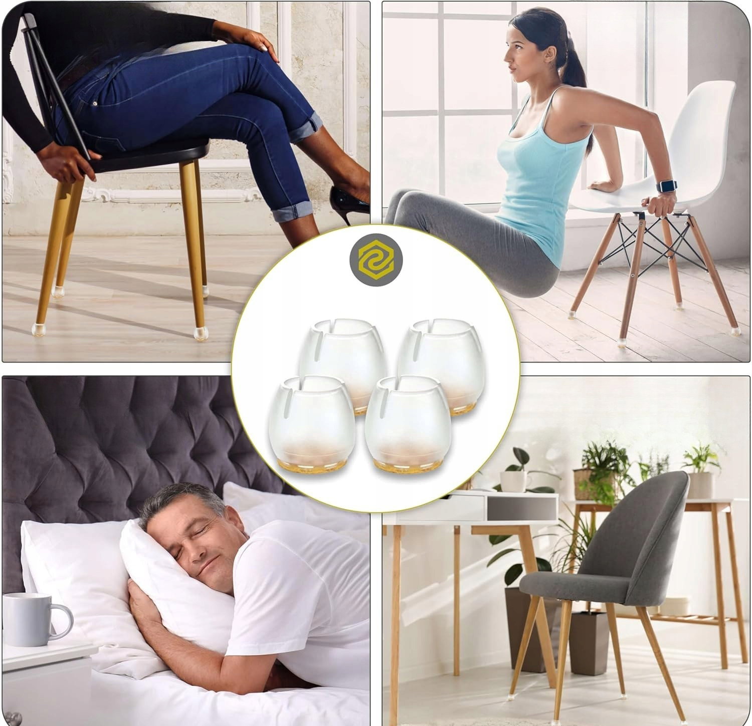 - Prosty montaż bez kleju: podkładki zaprojektowane tak, aby łatwo dopasować go do nóg o średnicy 1,2–1,5 cm, bez konieczności użycia kleju.