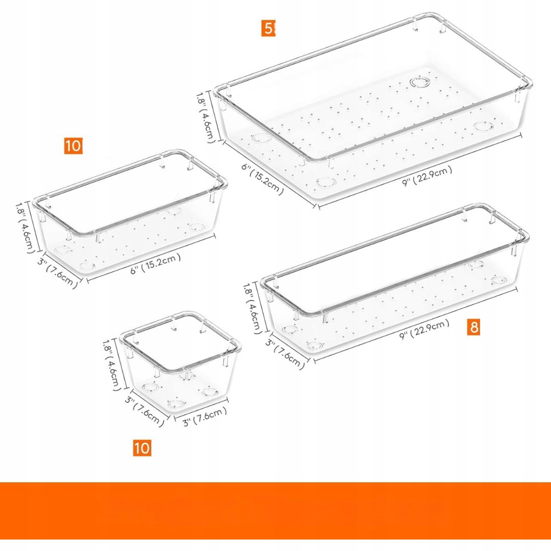- Materiał premium: materiał organizerów jest wyjątkowo przezroczysty, przypominając kryształ, co umożliwia lepsze oświetlenie szuflad i szybkie odnalezienie przechowywanych przedmiotów.