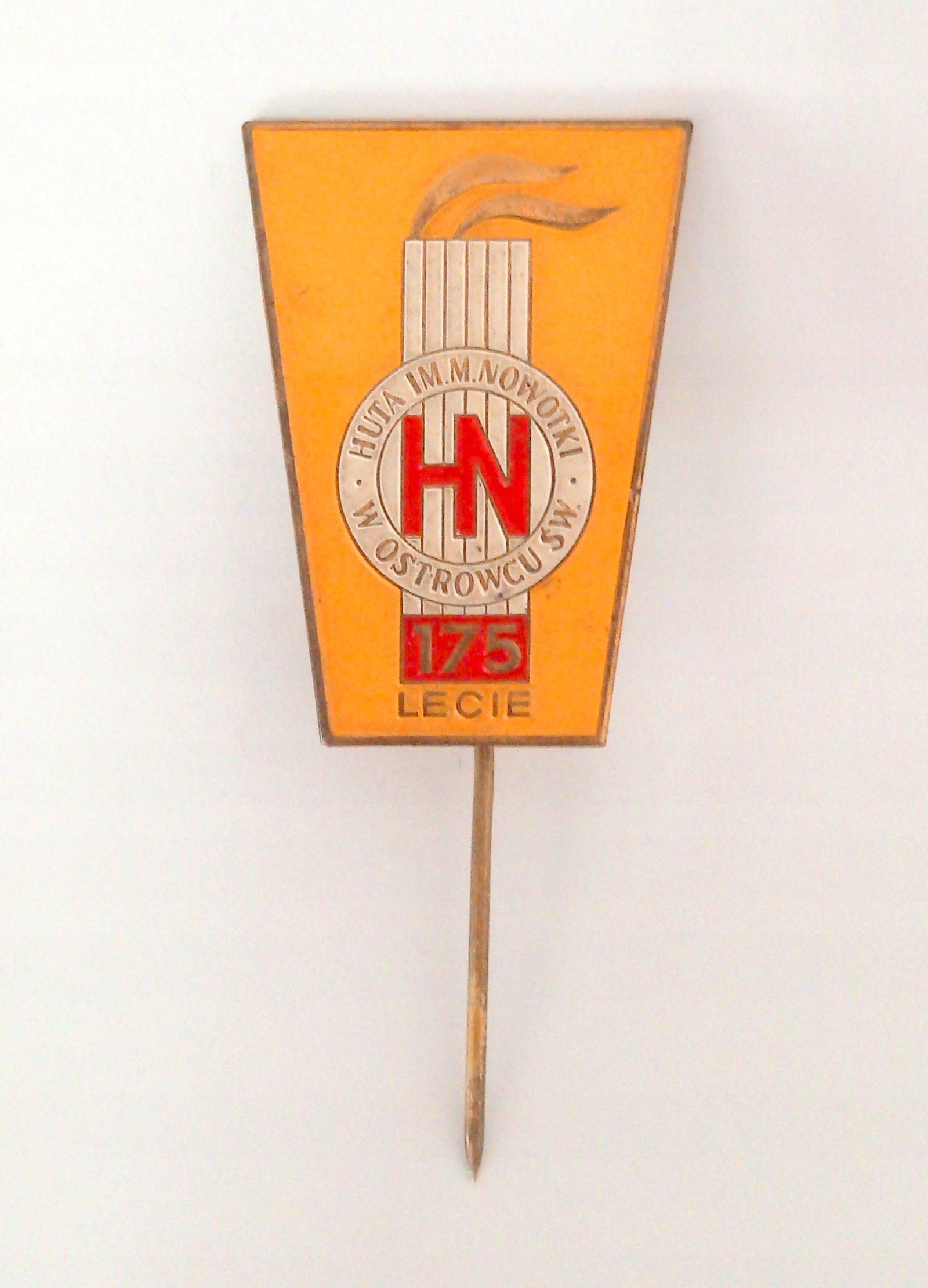 Firma New Rockers oferuje Państwu pamiątkę z PRLu - pin wyprodukowany z okazji 175-lecia Huty im. Nowotki w Ostrowcu Świętokrzyskim.