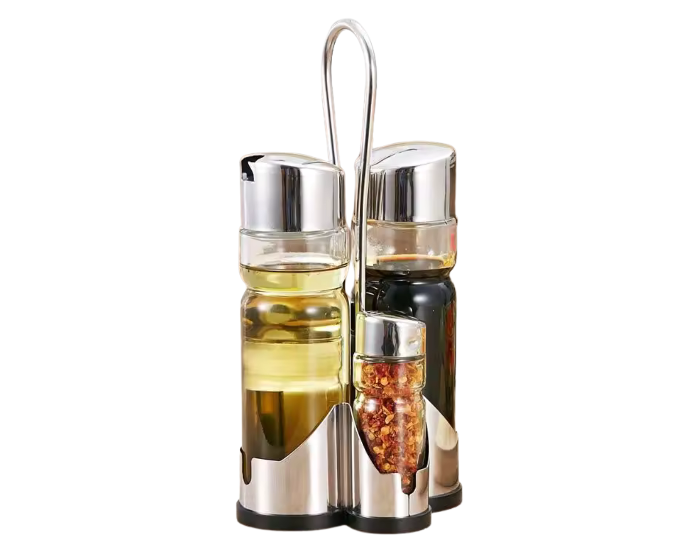 - Kompletny zestaw 4w1! W jednym eleganckim stojaku znajdziesz solniczkę, pieprzniczkę oraz butelki na olej i ocet. Wszystko, czego potrzebujesz do idealnego doprawienia Twoich ulubionych dań!