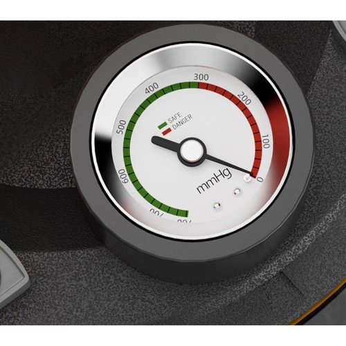 - MANOMETR – przyssawka jest wyposażona we wskaźnik mocy ssania. Pokazuje do 760 mmHg. Kiedy wskazówka jest na zielonym przedziale udźwig jest najmocniejszy.