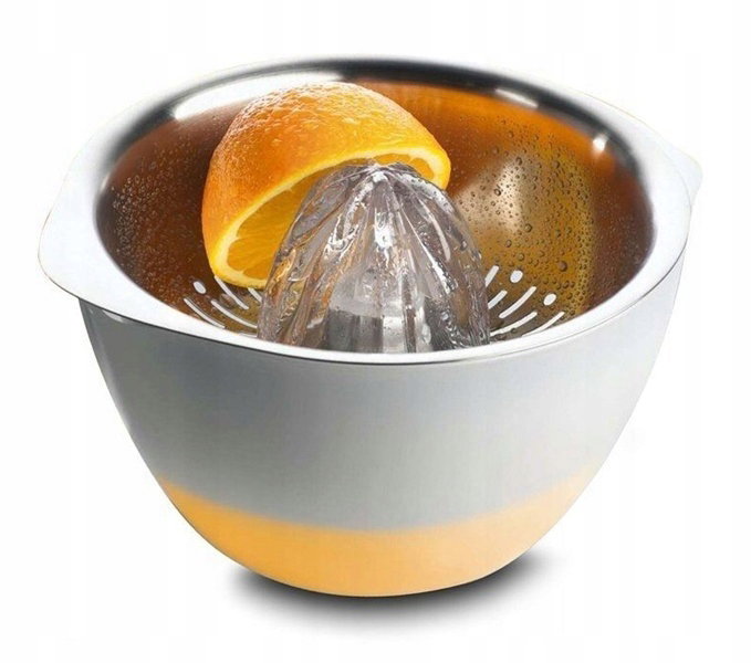- Profesjonalny stożek, czyli element wyciskający, można też wykorzystać do wydobycia miąższu z dużych, dojrzałych warzyw i owoców, np. pomidorów czy mango.