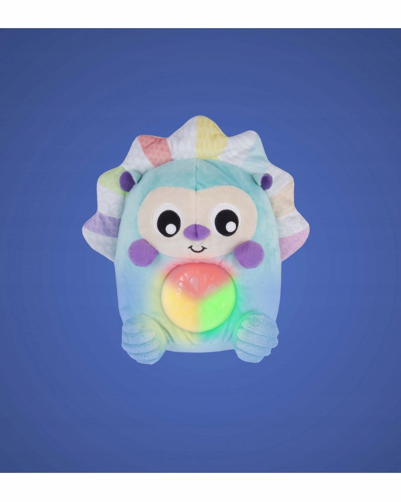 2. „ Różowy szum ” – który przypomina dźwięki w łonie matki i w naturalny sposób uspokaja dziecko. Brzuch świeci delikatnie na żółto