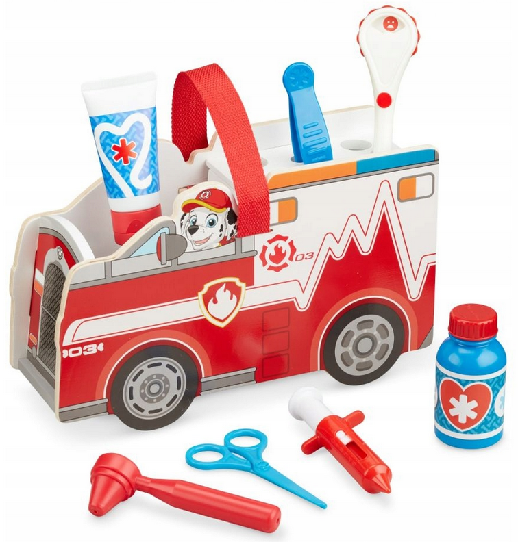 PSI PATROL DREWNIANY POJAZD RATUNKOWY ZESTAW LEKARSKI Z AKCESORIAMI
