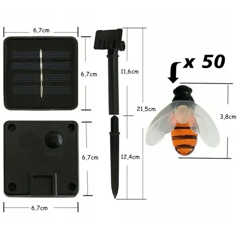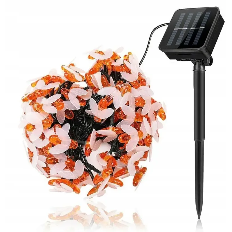 Lampki ogrodowe girlanda do oplatania pni drzew lub gałęzi, rój 30 pszczół zasilanych z jednego panelu solarnego, połączone dyskretnym przewodem. Oplecione blisko siebie tworzą świecący w ciemności rój.