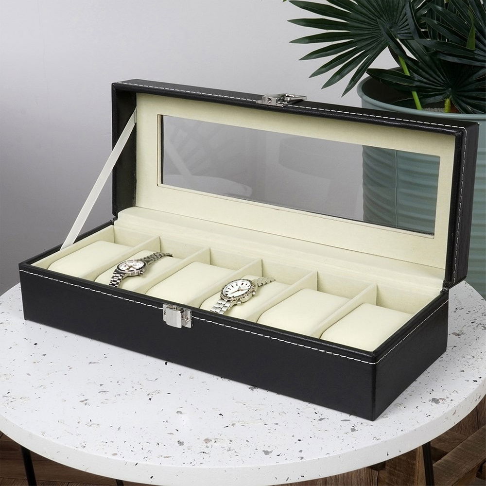 Pudełko Organizer Etui Pojemnik na Zegarki Czarne Przechowywania Zegarków