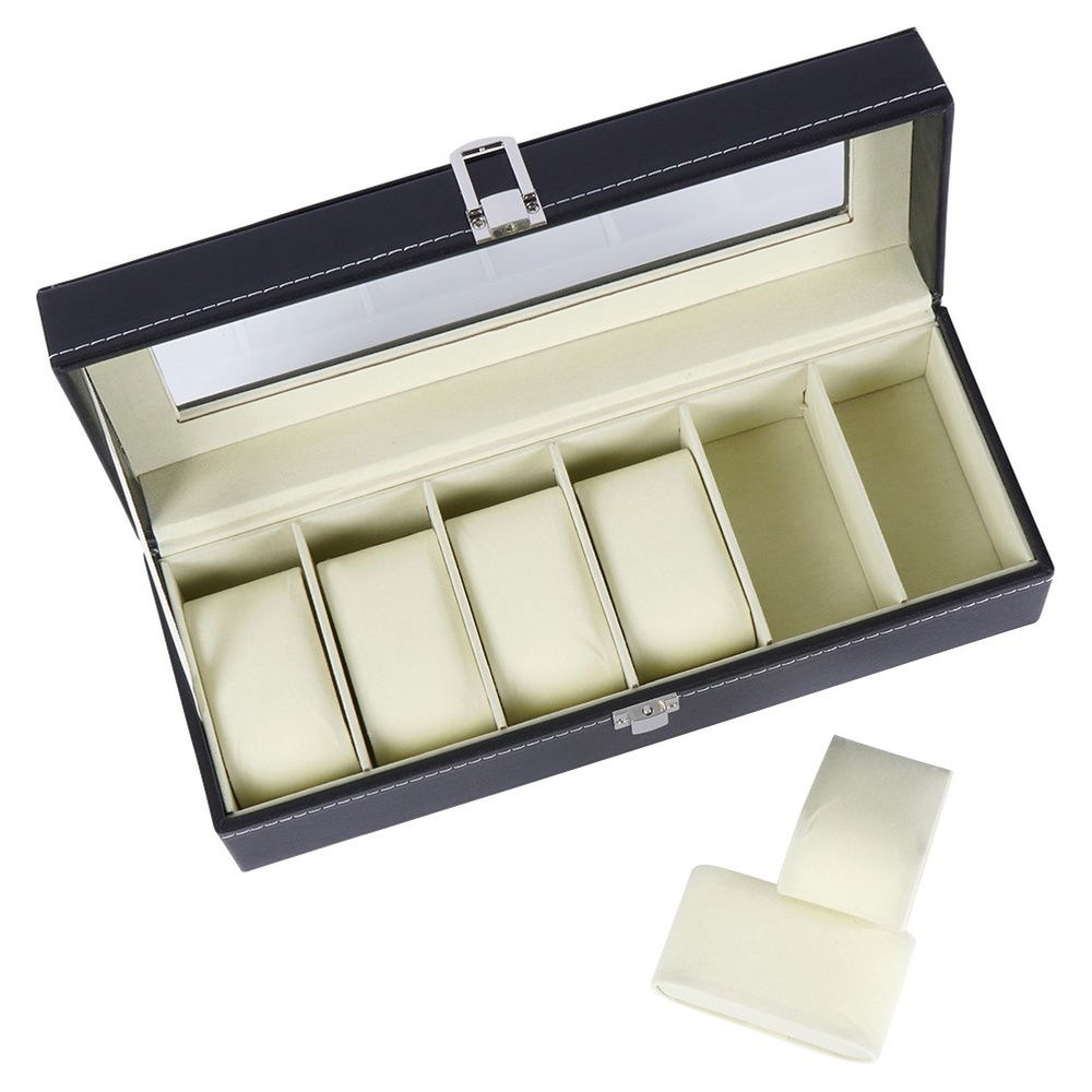 POJEMNE - Posiada 6 oddzielnych miejsc do przechowywania zegarków. Każdy zegarek będzie miał swoje miejsce, pięknie eksponując się na jasnym tle.