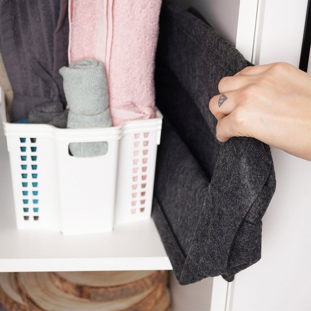 UNIWERSALNY - Posiada uniwersalne zastosowanie, idealnie nadaje się do przechowywania tekstyliów w salonie, akcesoriów biurowych w gabinecie, zabawek w pokoju dziecięcym, produktów kosmetycznych w łazience, a także akcesoriów sezonowych w przedpokoju, zapewniając łatwy dostęp i porządek, gdziekolwiek jest potrzebny. Wykorzystamy go również jako organizer do szafy.