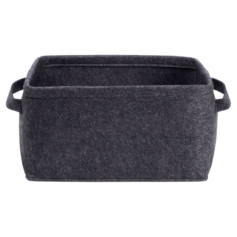 FILCOWY - Pojemnik w całości wykonany jest z trwałego i grubego filcu w czarnym kolorze. Odpowiednio użytkowany posłuży długie lata.