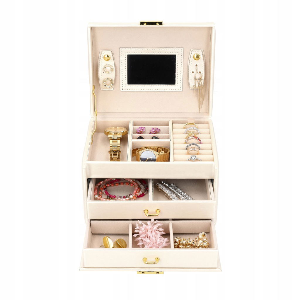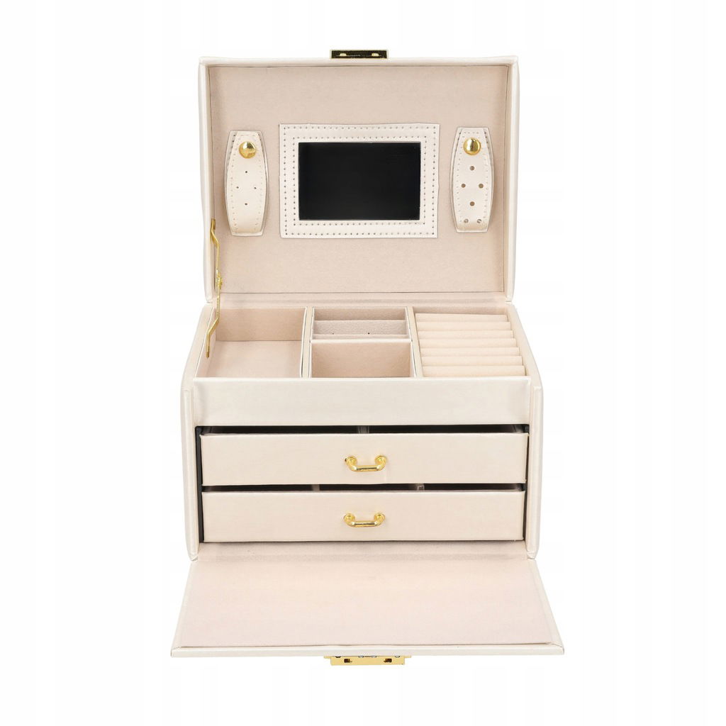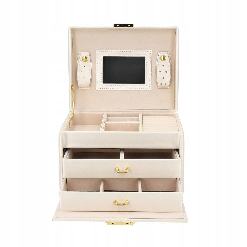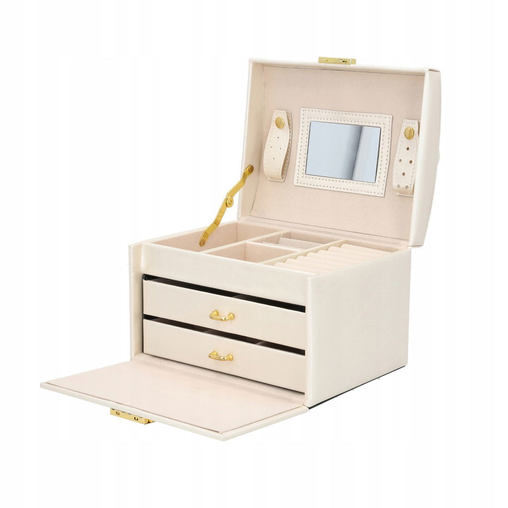 PUDEŁKO SZKATUŁKA KUFEREK NA BIŻUTERIĘ POJEMNY ELEGANCKIE LUSTERKO PREZENT!